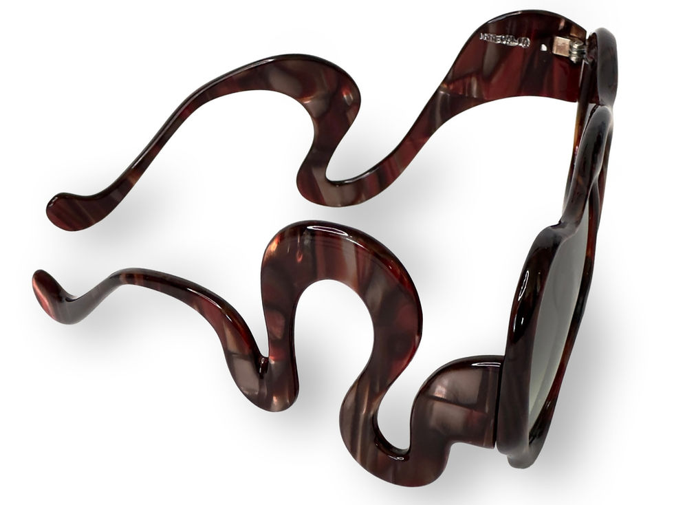In this particular piece, the entire design was accidentally mirrored, the lenses enlarged, and the frame made more slender than intended. But instead of starting over, it was finished as is, to avoid waste and honor the material. The left temple flows with one determined twist, while the right winds wild, like a restless river ready to break a new path. A mistake can be a gift.